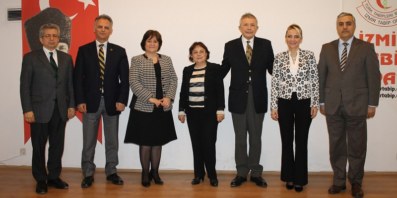 İzmir Tabip Odası’nda gerçekleştirilen basın açıklamasına, İzmir Tabip Odası Başkanı Prof. Dr. Fehmi Akçiçek, İzmir İl Sağlık Müdürü Uz. Dr. Bediha Salnur, Ege Üniversitesi Tıp Fakültesi Dekan Yardımcısı Prof. Dr. Funda Yılmaz Barbet, Dokuz Eylül Üniversitesi Tıp Fakültesi Dekanı Prof. Dr. Oğuz Dicle, İzmir Katip Çelebi Üniversitesi Tıp Fakültesi Dekanı Prof. Dr. Mehmet Ali Malas, İzmir Ekonomi Üniversitesi Tıp Fakültesi Dekanı Prof. Dr. Hakan Abacıoğlu katıldı.