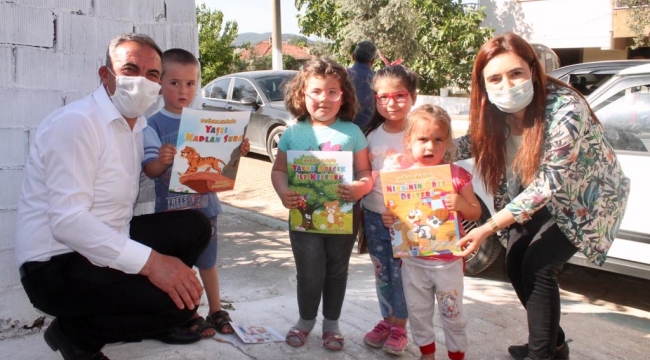 Beydağ'da uzun bir aradan sonra sokağa çıkan çocuklara Beydağ Belediyesi tarafından steril maske ve kitap sürprizi yapıldı.
