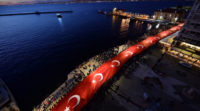 350 metrelik Türk bayrağını "kutsal bir emanet gibi" özenle taşıyan İzmirlilerin heyecanı, Büyükşehir Belediyesi'nin düzenlediği fener alayı, ışık gösterileri ve sevilen sanatçı Funda Arar'ın konseriyle doruğa ulaştı. Gündoğdu Meydanı'nı dolduran onbinlerce İzmirli'ye seslenen Başkan Aziz Kocaoğlu, "Biz İzmir’iz, Atatürk’ün kentiyiz. Ne mutlu İzmirlilere" şeklinde konuştu.
