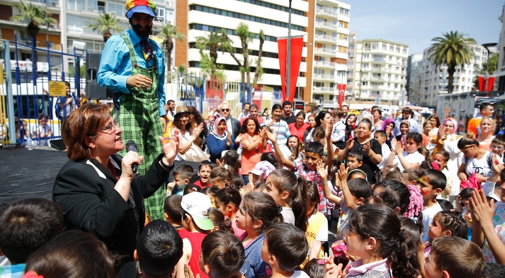 Konak Belediyesi’nin 23 Nisan Ulusal Egemenlik ve Çocuk Bayramı kutlamaları kapsamında anne ve çocukları hedef alan ödüllü projesi Bizim Çocuklar için düzenlenen şenlikle devam etti. Türkiye Cumhuriyeti’nin kurucusu Mustafa Kemal Atatürk’ün tüm dünya çocuklarına armağan ettiği 23 Nisan’ı kutlamak için Alsancak Dominik Caddesi’nde buluşan Bizim Çocuklar, eğlence dolu keyifli bir gün geçirdi. Konak Belediyesi Kadın, Sosyal Politikalar ve Projeler Müdürlüğü bünyesinde 2014 yılının Kasım ayından buyana başarısını her geçen gün artırarak sürdüren Bizim Çocuklar Projesi’nin yürütüldüğü beş semt merkezinden anne ve çocukların yer aldığı 23 Nisan şenliğine Konak Belediye Başkanı Sema Pekdaş da katıldı. Dominik Caddesi’nin çocuk şarkıları, palyaço, pandomim ve dans gösterileriyle renklendiği etkinlikte miniklerin eğlencesine ortak olan Pekdaş, 23 Nisan’ın aynı zamanda Türkiye Büyük Millet Meclisi'nin (TBMM) açılışının yıl dönümü olduğunu da hatırlatarak, “Özgürlüğümüzün, geleceğimizin teminatı siz çocuklarsınız. Bu nedenle Atatürk, bu bayramı size hediye etti. Bayramınız kutlu olsun. Aynı zamanda Türkiye Büyük Millet Meclisi'nin açılışının 96'ncı yılını da kutluyoruz. Aydınlık bir Türkiye sizi beklesin” dedi. Şubadap Çocuk Müzik Grubu’nun neşeli şarkılarıyla renklenen şenlikte minikler dans ederek kendilerine armağan edilen bayramın tadını doyasıya çıkardı. Etkinliğe katılan miniklere süt ve kek ikramı yapılırken, annelere de çay ve meşrubat ikram edildi.
