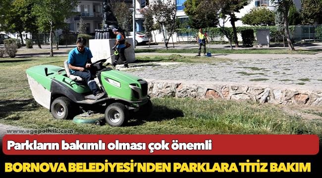 Bornova Belediyesi, ilçede bulunan 564 park ve yeşil alan, 260 çocuk oyun alanı ve 163 açık hava spor alanının bakım ve onarımını yıl boyunca sürdürüyor. Sorumluluğundaki 1 milyon 927 bin 153 metrekare yeşil alanda her türlü bakım çalışmasını gerçekleştiren Bornova Belediyesi Park ve Bahçeler Müdürlüğü ekipleri, parklarda temizlik, oyun gruplarının tamiri, aydınlatma elemanlarının bakımı, zemin döşemelerinin yenilenmesi, çim biçimi, form verme, çapa, yabani ot temizliği, demir korkuluk yapımı ve boyaması, fidan dikimi ve ağaç bakımı, budama çalışmaları, çocuk oyun gruplarının tamiratı, çöp kutularının değişimi, bankların ve kamelyaların tamiratı gibi uygulamaları düzenli olarak sürdürüyor. Bornovalılar da park ve yeşil alan bakımlarından duydukları memnuniyeti dile getiriyor.