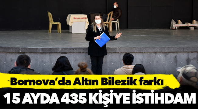 Altın Bilezik Projesi kapsamında 2021 yılının ilk üç ayında iş arayan 304 kişi Bornova Belediyesi’ne başvuru yaptı. Çeşitli pozisyonlar için 32 firmanın insan kaynakları yetkilileri ile bu 304 kişinin de aralarında bulunduğu 7.672 üzerinde görüşme gerçekleştirildi. Bu süreçte toplam 435 kişi Bornova Belediyesi’nin aracılığı ile iş imkanına kavuştu. 2020 ve 2021 yılının geride kalan bölümünde istihdamı sağlanan toplam kişi sayısı 1663 oldu. Altın Bilezik envanterinde 5.684’nin cvsi bulunuyor.