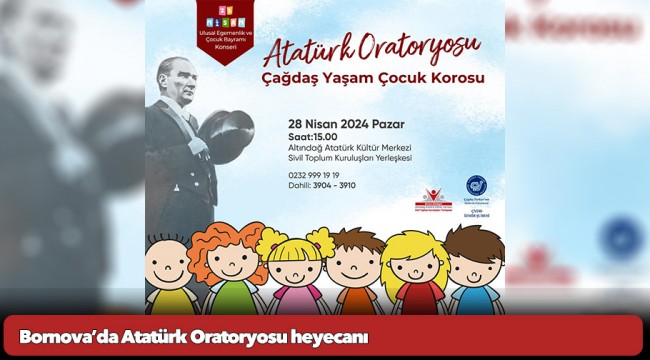 Çağdaş Yaşam Çocuk Korosu tarafından sahnelenecek Atatürk Oratoryosu’nu izlemek isteyenler, Bornova Belediyesi’nin 0 (232) 999 19 19 numaralı telefonunu arayıp, dahili 3904 veya 3910’u çevirerek iletişime geçebilecekler.