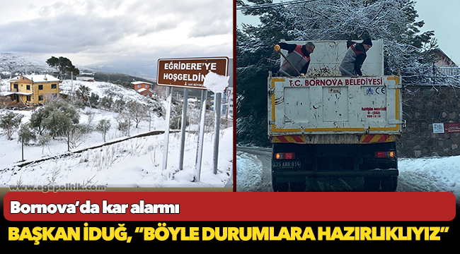 Eğridere, Çamiçi, Kayadibi, Karaçam, Sarnıç, Kurudere, Beşyol, Yaka ve Çiçekli mahalleleri olmak üzere ilçenin yüksek kesimlerinde geç saatlerde başlayan kar yağışı nedeniyle Bornova Belediyesi ve İzmir Büyükşehir Belediyesi ekipleri gece boyu çalıştı. Gündüz de devam eden çalışmalarla kapanan yollar açılırken araçların kayma riskine karşı tuz serim çalışması yapıldı.