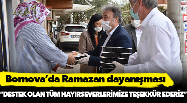 Koronavirüs salgınına karşı alınan önlemler çerçevesinde her Ramazan’da kurduğu iftar sofralarına ara veren Bornova Belediyesi, farklı yöntemler kullanarak Bornovalıları yalnız bırakmadı. Toplu iftarlar yerine her akşam iftar öncesi ihtiyaç sahibi vatandaşlara hijyen kurallarına uygun biçimde paketlemiş sıcak yemek dağıtıldı. Ramazan boyunca 41 bin vatandaşın evine yemek götürüldü. İhtiyaç sahibi vatandaşların her zaman yanında olduklarını belirten Bornova Belediye Başkanı Dr. Mustafa İduğ, “Ramazan ayı boyunca ilçemizde ki ihtiyaçlı ailelere iftar menüsü dağıttık. İhtiyaç sahibi aileleri titizlikle belirleyerek bu zor günlerde kimseyi incitmeden, kırmadan yardımlarımızı sürdürdük”dedi.