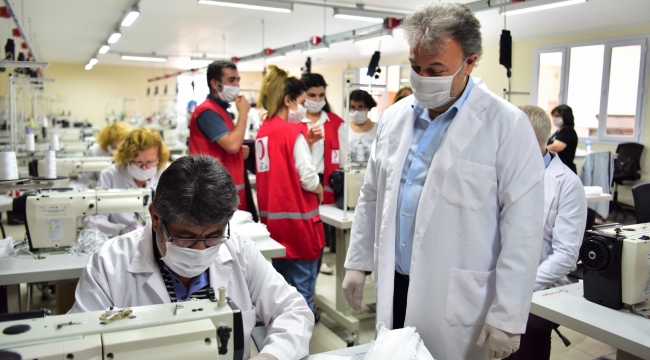 Maske bulmanın zorlaştığı, talep nedeniyle fiyatlarının fahiş bir şekilde arttığı salgının ilk günlerinde Çamdibi’nde Altın Bilezik’e bağlı tekstil atölyesinde gönülleri desteği ile maske üretimine başlayan Bornova Belediyesi, hem kendi imkanları ile ürettiği ve temin ettiği maskeleri öncelikle sağlık çalışanları, risk altında çalışan taksi ve minibüs şoförleri ile kendi personeline dağıttı. Sonraki süreçte Türk Kızılay’ı Bornova Şubesi ile birlikte cerrahi yüz maskesinin seri üretimi için harekete geçerek kumaşı dikime hazırlayan süreçleri otomatikleştiren makine satın aldı.