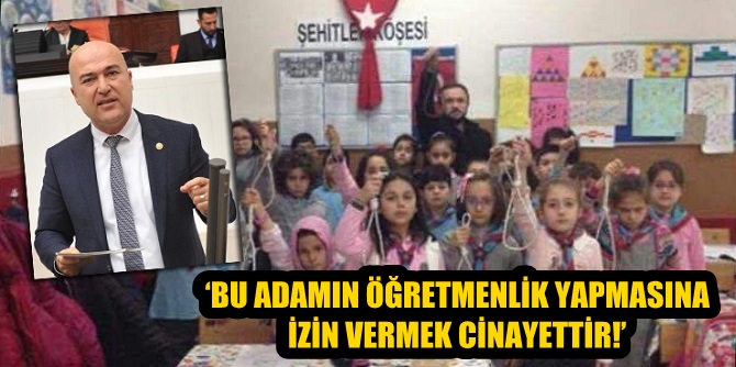 Ortaokul öğrencilerinin eline idam ipi vererek fotoğraf çektiren o öğretmeni Milli Eğitim Bakanı İsmet Yılmaz’a soran CHP İzmir Milletvekili Murat Bakan, “Bu adamın öğretmenlik yapmasına izin vermek cinayettir” dedi.