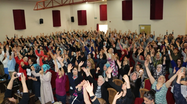 Nefes Terapisti Nevdar Dönmez, salonu dolduran kadınlara doğru nefes alma teknikleri hakkında bilgilendirmelerde bulunarak, toplu halde nefes alma egzersizleri de yaptırdı. Doğru nefes almanın önemine değinen Dönmez, doğumdan itibaren insanların bebeklikte doğru bir şekilde nefes aldığını, ancak ileriki zamanlarda bu durumun bozularak sadece göğüs nefesi aldığını ifade etti. Diyafram ile alınan nefesin doğru nefes alma şekli olduğunu belirten Dönmez, salonu dolduran kadınlarla nefes alma egzersizleri ve kahkaha terapisi uygulamaları yaptı. Dönmez ayrıca, bir nefes seansının 100 psiko terapiye eş değer olduğunu belirterek, "Nefes seansının içerisine bir bütün olarak bedeninizle ve bütün sisteminizle dahil olduğunuz için gerçek bir iyileşme sağlayabiliyorsunuz" dedi.