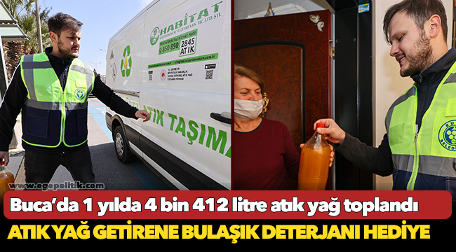 Buca Belediyesi İklim Değişikliği Müdürlüğü tarafından hayata geçirilen proje ile evlerde kullanılan bitkisel yağ atıklarının, lavabo giderlerine dökülerek doğada oluşturduğu tehlikeleri ortadan kaldırmak için farkındalık yaratıldı. Proje ile vatandaşlara çevre bilinci aşılanırken geri dönüşüm sayesinde ekonomiye de katkı sağlandı. Vatandaşların büyük ilgi gösterdiği çalışma kapsamında son bir yılda 4 bin 412 litre atık yağ toplandı.