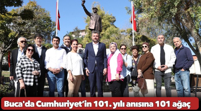 Buca Belediyesi, Cumhuriyet’in 101.yılı anısına ilçenin parklarına 101 ağaç dikiyor. İlk ağaçlar Buca Belediye Başkanı Görkem Duman tarafından Barış Mahallesi'nde bulunan Ecevit Parkı'nda dikildi. Buca Belediye Başkanı Görkem Duman, iki ıhlamur bir de zakkum ağacını toprakla buluşturarak can sularını verdi. Mahalle sakinlerinin de bulunduğu anlamlı etkinlikte dikilen ağaçlara, Birlik, Beraberlik ve Barış isimleri verildi.