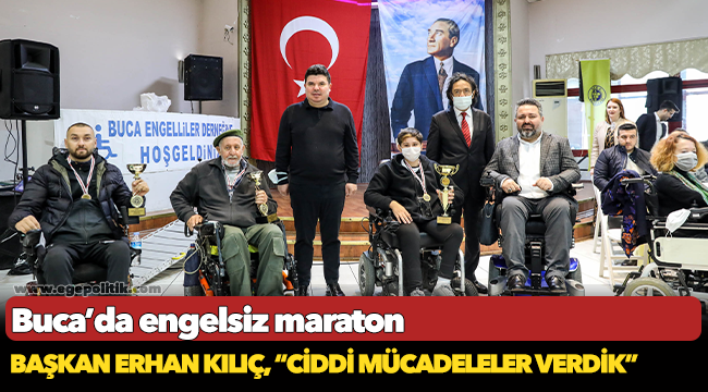 Buca Belediyesi, Buca Engelliler Derneği ile 3 Aralık Dünya Engelliler Günü’nde farkındalık yaratmak için Power Wheelchair Marathon (Elektrikli Tekerlekli Sandalye Maratonu) düzenledi. Koşu Yolu Caddesi’nde başlayan ve birçok sivil toplum kuruluşunun desteklediği maraton Şirinyer’deki Buca Belediyesi Çocuk ve Yetişkin Engelli Eğitim Merkezi’nde son buldu. Maratonda yarışmacıların “Ayrımcılık değil, eşitlik istiyoruz”, “Ayrımsız beraber yaşamak istiyoruz”, “Sempati değil empati istiyoruz” yazılı dövizleri dikkat çekti. Maratona Buca Belediye Başkanı Erhan Kılıç da elektrikli tekerlekli sandalye ile katıldı.