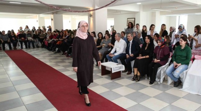 Düz dikiş, overlok eğitimlerini tamamlayıp kişiye özel dikimler yapan 35 kursiyer kadın etek, bluz, elbise, pantolon ve bebek eşyalarından oluşan özel dikimlerini Çamlıkule Kültür Merkezi’nde düzenledikleri mini defile ile tanıttı. Kendi diktikleri kreasyonların mankenliğini de üstlenen kursiyerler, kıyafetlerin yanında podyumda sergiledikleri profesyonellikle göz doldurdu.