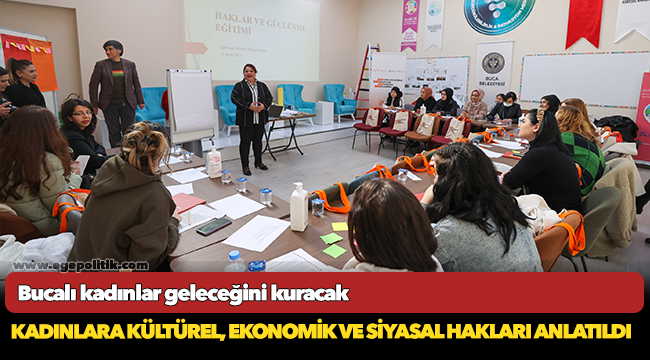 KADINLARIN istihdama ve sosyal yaşama daha fazla katılım sağlamaları için önemli çalışmalara imza atan Buca Belediyesi, Geleceğini Kuran Genç Kadınlar Projesi’nin paydaşı oldu. Proje kapsamında verilen eğitimde, kadınlara sahip oldukları kültürel, ekonomik ve siyasal hakları anlatıldı.