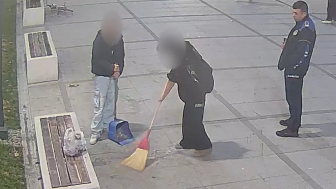 İzleme ve Değerlendirme Merkezindeki ekipler tarafından merkez park heykel önünde bir grup gencin çekirdek ve yanında farklı yiyecekler yedikleri, çekirdek kabuklarını yere atıp, diğer yiyeceklerin çöplerini de ortada bıraktıkları tespit edildi. Alanda oluşan ciddi seviyedeki kirliliğe zabıta ekipleri anında müdahale etti. Zabıta personeli çevre kirliliğine sebebiyet veren gençleri tespit etti. Oluşan çevre kirliliğini gidermek için gençlere süpürge ve kürek verilerek kirlettikleri yer temizletildi. Yere atılan çöpler toplatıldı. Ardından çevre kirliliğine sebebiyet veren kişilere kabahatler kanunu kapsamında idari para cezası da uygulandı. Ayrıca yapılan davranışın doğru olmadığı hatırlatılarak, çevre temizliği konusunda daha hassas olmaları uyarısı yapıldı.
