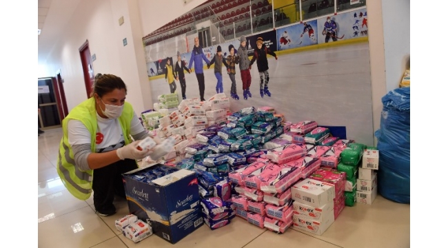 Depremzedelere yardım amacıyla yapılan ayni bağışların ve toplanan malzemelerin dağıtımı için Bornova Aşık Veysel Buz Sporları Salonu’nda bir lojistik merkezi kuruldu.