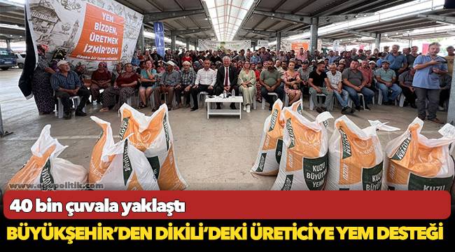 Dikili’de yem dağıtım törenine İzmir Büyükşehir Belediye Başkan Vekili Mustafa Özuslu, Tarımsal Hizmetler Dairesi Başkanı Şevket Meriç, Büyükşehir Belediyesi bürokratları, Dikili Belediyesi Meclis Üyesi Mustafa Demirel, Dikili Belediyesi Muhtarlık İşleri Müdürü Tamer Akman, muhtarlar ve üreticiler katıldı.