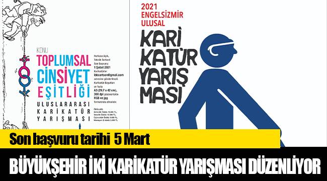 İzmir Büyükşehir Belediyesi biri uluslararası diğeri ulusal çapta olmak üzere iki karikatür yarışması düzenliyor. Toplumsal Cinsiyet Eşitliği Uluslararası Karikatür Yarışması’nın son başvuru tarihi 1 Şubat, Engelsizmir Ulusal Karikatür Yarışması’nın son başvuru tarihi ise 5 Mart olarak açıklandı.
