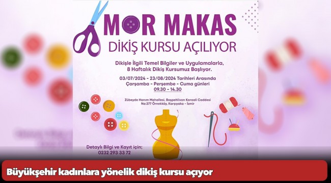 İzmir Büyükşehir Belediyesi Kadın Çalışmaları Şube Müdürlüğü, kadınlara yönelik Mor Makas Dikiş Kursu başlatıyor.