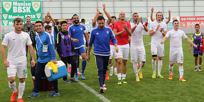 Manisa Büyükşehir Belediyespor’da Bilal’in 66. Dakikada sol kanattan ortasına ceza sahası içinde Olcay kafayla dokundu top direğin hemen üzerinden auta gitti.
