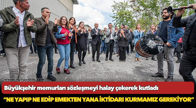 Konuşmaların ardından toplu sözleşme sendika yetkilileri ve İzmir Büyükşehir Belediye Başkanı Tunç Soyer tarafından imzalandı. Başkan Soyer ve emekçiler, sözleşmeyi davul zurna eşliğinde halay çekerek kutladı.