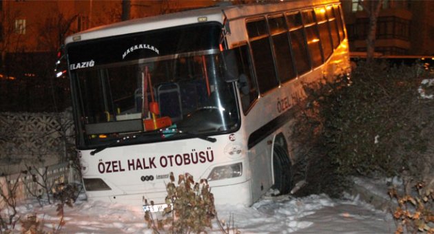Elazığ'da özel halk otobüsü, buzlu yolda kayması sonucu bahçe duvarına çarptı.