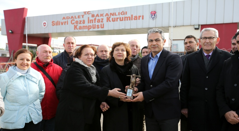 MİT TIR’ları haberi nedeniyle parmaklıklar ardına gönderilen Can Dündar’a destek olmak ve ‘Basın Özgürlüğü Ödülü’nü ulaştırmak için yola çıkan Karşıyaka Belediyesi ve İGC heyeti, bugün Silivri Ceza İnfaz Kurumu’na gitti. Cesur gazetecinin ödülü, Karşıyaka Belediye Başkanı Hüseyin Mutlu Akpınar ve İGC Başkanı Misket Dikmen tarafından, eşi Dilek Dündar’a takdim edildi. Can Dündar da avukatı aracılığıyla teşekkür mesajı gönderdi.