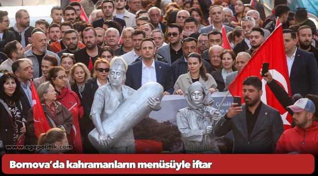 18 Mart Çanakkale Zaferi ve Şehitleri Anma Günü nedeniyle düzenlenen organizasyon kortej yürüyüşüyle başladı. Bornovalıların sevgi gösterisi altında Bayraklı sınırından merkeze kadar yürüyen kalabalık kortej, buradan Büyükpark’ta kurulan iftar alanına geldi.