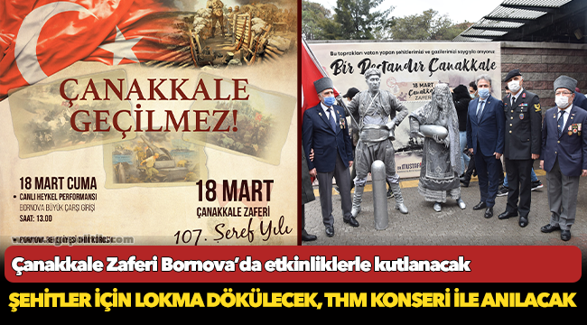 18 Mart Cuma günü gerçekleşecek etkinlikler saat 13:00’te Bornova Çarşı girişinde başlayacak. Canlı heykel performansı ve şehitler için lokma dökümü yapılacak. Saat 20:00’de ise Bornova Kültür Merkezi’nde (Nikah Salonu)