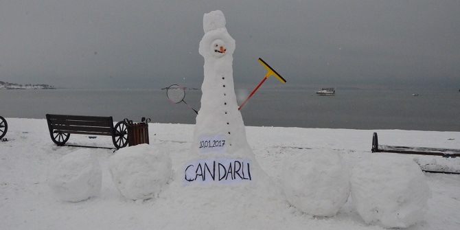Yıllar sonra ilk kez bu kadar etkili olan kar yağışı kentte renkli görüntülerin oluşmasına neden oldu. Deniz manzaralı oturma banklarının arasına kardan adam yapan Çandarlılılar, yaptıkları kardan adamın gövdesine günün tarihini yazarak anı ölümsüzleştirdiler.