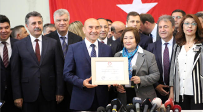Geçtiğimiz hafta sonu yapılan seçim yarışının ardından rekor oy alarak seçilen Tunç Soyer, İzmir Büyükşehir Belediye Başkanlığı görevini resmen devraldı. İzmir'in yeni başkanı güne İl Seçim Kurulu'ndan mazbatasını alarak başladı. Tarihi M.Ö. 6500 yıl öncesine dayanan, 8500 yıllık bir şehre belediye başkanı olmanın büyük mutluluğunu yaşadığını dile getiren Başkan Tunç Soyer, "İzmir'in 35'inci belediye başkanıyım. Gerçekten çok büyük bir gurur. Bugün aynı zamanda İzmir'in efsane belediye başkanlarından rahmetli Ahmet Piriştina'nın doğum günü. Bu vesileyle onun efsanesine de sahip çıkacağımızı belirtmek istiyorum. Bugün bu görevi devralıyorum, ama şunu da biliyorum ki bu bir nöb ettir. Bana oy veren, vermeyen herkesin daha büyük onur duyarak yaşaması, bu kenti koruyup ileriye taşımak için canla, başla ve aşkla çalışacağım" dedi.