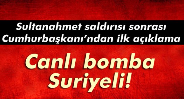 Cumhurbaşkanı Cumhurbaşkanı Recep Tayyip Erdoğan, Sultanahmet Meydanı'nda meydana gelen ve Suriye kökenli bir canlı bomba saldırısı olduğu değerlendirilen terör olayını, esefle kınadığını söyledi.