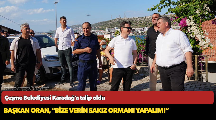 Çevre Düzeni Planında Orman Alanı’nda kalan, Nitelikli Doğal Koruma Alanı olarak geçen Karadağ Bölgesi’nde inşaat izni olmadığını, ancak tıbbi ve aromatik bitki yetiştiriciliği yapılabileceğini belirten Çeşme Belediye Başkanı M. Ekrem Oran, bölgenin Çeşme Belediyesi’ne tahsis edilmesi konusunda gerekli çalışmaları başlattıklarını söyledi.