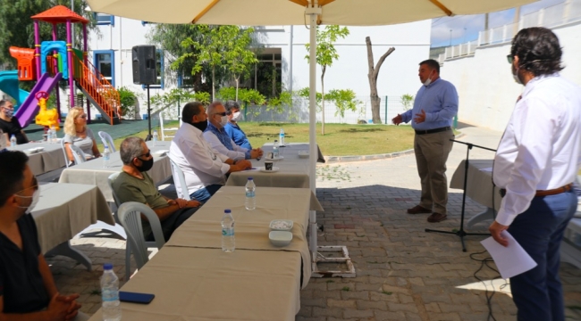 Alaçatı Ek Hizmet Binası’nda açık alanda sosyal mesafe kurallarına göre gerçekleşen eğitimde konuşma yapan Çeşme Belediye Başkanı M. Ekrem Oran, normalleşme sürecinde bir dizi önlem aldıklarını ve bu önlemleri uygulamaya geçirdiklerini kaydederek; “Geçen yıl milyonları ağırladığımız ilçemizde yeni tip Koronavirüs ile mücadele kapsamında normalleşme programlarını tek tek hayata geçiriyoruz. Önceliğimiz işletmelerin gerekli tedbirleri alması. Bu konuda denetimlerimizi sıklaştıracağız” dedi.