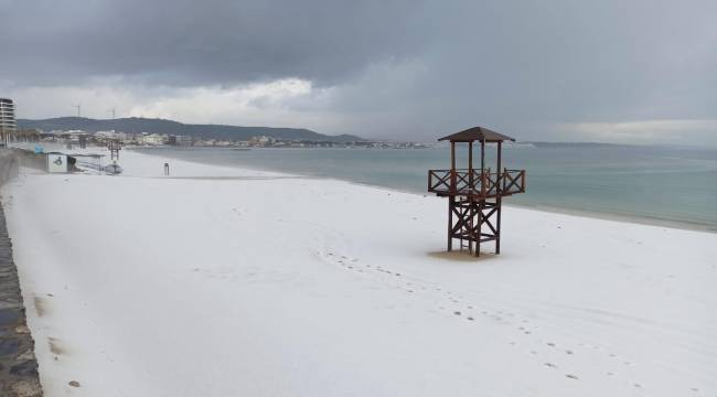 Türkiye’nin yaz turizminde gözde merkezlerinden olan Çeşme’ye dolu yağdı. Çeşme beyaza büründü.