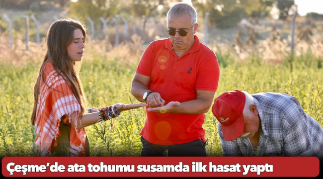 Çeşme Belediyesi ve S.S. Çeşmeköy Tarımsal Kalkınma Kooperatifi ile beraber ortaklaşa yürütülen proje kapsamında ilk kez düzenlenen Ata Tohumu Susam Hasadı etkinliği Ovacık’ta gerçekleştirildi. Etkinliğe, Çeşme Belediye Başkanı Lal Denizli, Tarımsal Hizmetler Müdürü Şerif Mustafa Vural, S.S. Çeşmeköy Tarımsal Kalkınma Kooperatifi Başkanı Kazım Beyaz ile çok sayıda üretici ve Ovacıklı yurttaş da katıldı.
