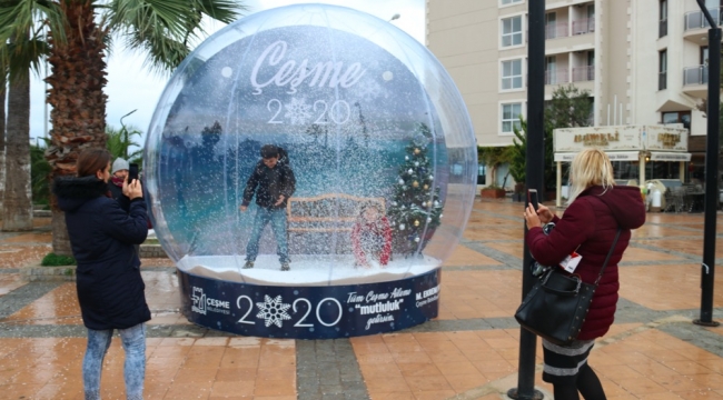 Yaklaşan yeni yılı bir dizi etkinlikle kutlayarak, Çeşmeli vatandaşların unutulmaz bir yılbaşı geçirmelerini isteyen Çeşme Belediye Başkanı M. Ekrem Oran, ilçede bir ilke imza atarak fark yarattı. Çeşme Belediyesi önüne ve Alaçatı Meydan’a dev bir ‘Kar Küresi’ yerleştirdi. İçinde çam ağacı ve bir bank bulunan dev kar küresi içine giren vatandaşlar bol bol hatıra fotoğrafı çektirdi. Çeşme Belediye Başkanı M. Ekrem Oran da kar küresinin içine girerek vatandaşların coşkusuna ortak oldu.