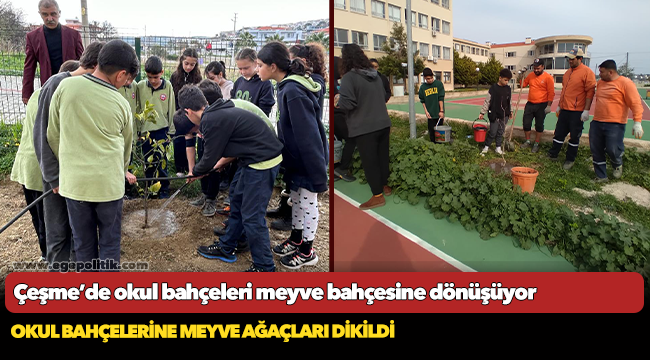 Çeşme Belediyesi Park ve Bahçeler Müdürlüğü ekiplerince Çeşme’de bulunan 30 okul ve öğrenci yurduna, öğretmen evine toplam 213 adet olmak üzere, 8 farklı türde meyve ağacı dikildi.