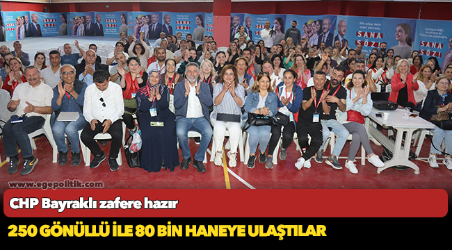 Türkiye, pazar günü yapılacak genel seçimlere odaklanırken Bayraklı CHP İlçe Örgütü yürütülen seçim çalışmaları kapsamında son 5 günde 80 bin haneye ulaştı. Binlerce vatandaşın Millet İttifakı’na desteğini alan 250 kişilik gönüllü ordusu tüm ilçeyi kapı kapı gezdi. Stratejik propaganda kapsamında 13 mahalle belirleyen ilçe örgütü, 22 bin 827 apartmanda 78 bin 752 haneyi belirledi. CHP Bayraklı İlçe Başkanı Didem Gültekin öncülüğünde oluşturulan ekipler; 75. Yıl, Adalet, Alpaslan, Bayraklı Merkez, Cengizhan, Çay, Çiçek, Emek, Fuat Edip, Refik Şevket, Tepekule, Gümüşpala ve Muhittin Erener Mahallelerinde çalışma yürüttü.