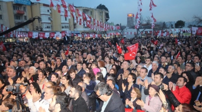 Kasaplar Meydan Gelin gibi süslenmiş ve yaklaşık beşbin Bucalı alanı doldurarak büyük bir miting havasında, Suat Nezir Buca Belediye Başkan Adaylığını açıkladı. CHP İzmir Milletvekili Özcan Purcu’da Nezir’in açıklaması için oradaydı.