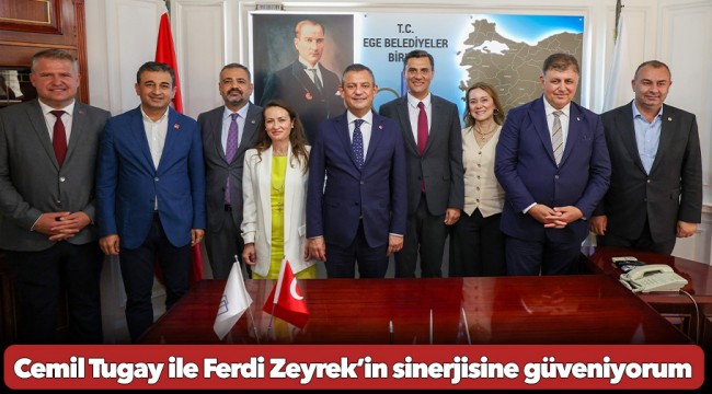 CHP Genel Başkanı Özgür Özel, Ferdi Zeyrek’in Ege Belediyeler Birliği Başkanı olarak seçilmesinin kendileri açısından onur verici olduğunu belirtti. Özel, “Yapılan seçimdeki mutabakat, tüm belediyelerin CHP'de, Ege'de olması hepimiz açısından mutluluk verici bir durum. CHP sadece kıyılara sıkışmış bir görüntüden, Ege'deki bütün belediyeleri kazanan, İç Anadolu'da çok sayıda belediye kazanan bir noktaya geldi. Hem Ege Belediyeler Birliği, hem Türkiye Belediyeler Birliği'nde, hem de Tarihi Kentler Belediyeler Birliği'nde CHP'li belediye başkanlarımız var” dedi. Özel, Dr. Cemil Tugay ile Ferdi Zeyrek’in sinerjisine güvendiğini, her iki ismin de başarılı çalışmalar yapacağına yürekten inandığını söyledi.