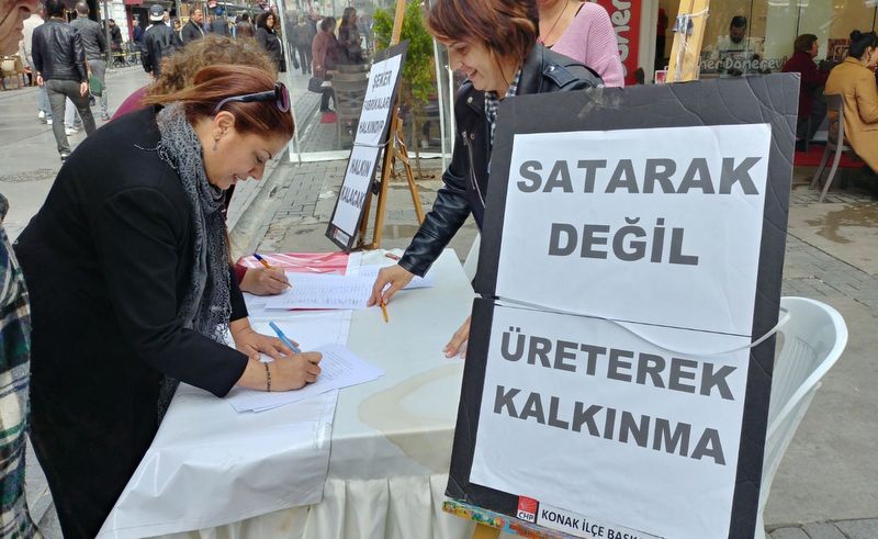 CHP Konak İlçe Örgütü Kadın ve Gençlik Kollarının öncülüğünde başlattığı imza kampanyasını İzmirlilerin yoğun ilgilisi ile karşılaştı. İlçe Başkanlığı olarak toplumsal reflekslere büyük önem vermekteyiz. Ülkemiz AKP iktidarının yanlış politikaları ile büyük bir çıkmaza sürüklenmektedir. Her geçen gün yoksullaşan ülke ekonomisi kamu adına büyük önem arz eden alanların satışı ile ayakta tutulmaya çalışılıyor. Şeker fabrikaları, kırda yaşayan tarım ve hayvancılık ile geçinen toplum kesimleri açısından çok önemli, iktidar partisi bu kuruluşları daha önce bir çok defa yaptığı gibi uluslar arası tekkelerin emrine vermekte kararlı. Tarım ve hayvancılık ile geçinen yurttaşlarımız çaresizlik içinde kentlere sürüklenerek AKP'nin rant ekonomisi içinde yoksulluğa ve yoksunluğa sürükleniyor. Oluşacak olan ekonomik yıkım ve bozulacak olan toplum sağlığı ise umurlarında bile değil. Parti örgütü olarak bu gerçeği toplumuza anlatmayı önemsiyoruz. Bizlerin ekonomik durumunu ve sağlığını direk etkileyecek olan bu politikalara karşı eylemlerimiz ve direnişimiz her alanda sürecek.