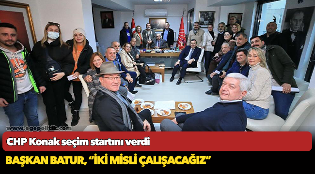 CHP Konak İlçe örgütü seçim öncesi çalışmalarını, CHP Konak ilçe binasında düzenlenen geniş katılımlı bir toplantıyla başlattı. Partililerin seçim sürecinde yapılacak çalışmalarla ilgili görüşlerinin alınarak, yol haritasının belirlendiği toplantıya Konak Belediye Başkanı Abdül Batur, CHP Konak İlçe Başkanı Akın Küçükoğullarından, CHP ilçe örgütleri yöneticileri, kadın ve gençlik kolları başkanları ve üyeleri ile Konak Belediye Meclisi üyeleri katıldı. Başkan Batur, toplantıda yaptığı konuşmada seçime yaklaşık 100 gün kaldığına dikkat çekerek, “Artık çok önemli bir sürece giriyoruz. Yaklaşık 100 gün sonra gerçekleşecek seçimde ana işleri bugün burada olan kadrolar yapacak. Bugün onun için buradayız. Bu yaklaşık üç aylık süre, çok çabuk geçer. Bu işi başaracağız; çünkü başka şansımız yok. Ya karanlığa doğru gideceğiz ya da aydınlığa doğru yönümüzü çevireceğiz. Bizlere çok büyük görevler düşüyor” diye konuştu.