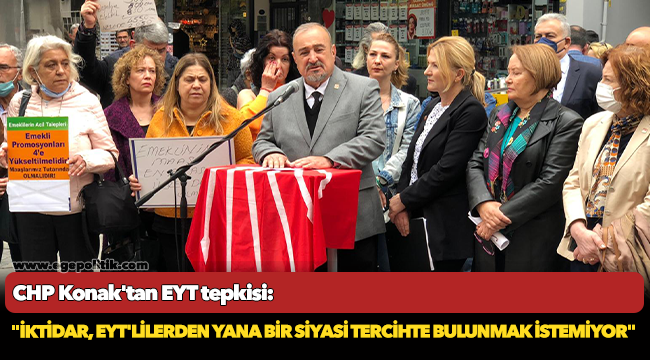 CHP Konak İlçe Başkanı Akın Küçükoğullarından, “İktidar, EYT'lilerden yana bir siyasi tercihte bulunmak istemiyor” dedi.