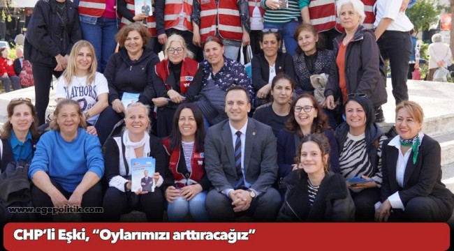 Bornova’da Çanakkaleliler ve Trabzonlular Derneklerini ziyaret eden, Çamdibi bölgesinde esnafla ve Bornovalılarla sohbet eden genç aday Eşki yaptığı konuşmada “Hem belediyeci hem sendikacı hem de partinin gençlik kolları mutfağında yetişmiş bir kardeşiniz, arkadaşınızım. Bu görevlerim ve çalışmalarım neticesinde Bornova'yı iyi bilenlerden birisiyim. Sahadaki sorunları, sıkıntıları, talepleri, üniversite gençlerinin istediklerini, kırsaldakilerin isteklerini, merkezdeki ihtiyaçları iyi biliyorum. Güçlü Bornova’yı kurmak için sizlerle birlikte yol yürümeye talibim. Sadece oyunuzu istemiyorum, aynı zamanda çarşıda pazarda Atatürk’ün ‘İki büyük eserim var. Biri Cumhuriyet biri de CHP’ dediği, bizlere emanet ettiği CHP’nin başarısı için gayret göstermenizi de bekliyorum” diyerek seslendi.