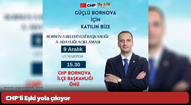 Eşki'nin 9 Aralık Cumartesi (yarın) saat 15:30'da, ilçe başkanlığı önünde düzenleyeceği toplantıyla aday adaylığı çalışmalarına hız vereceği öğrenilirken farklı ilçelerden bir çok CHP'linin de Ömer Eşki'yi açıklamasında yalnız bırakmayacağı öğrenildi.