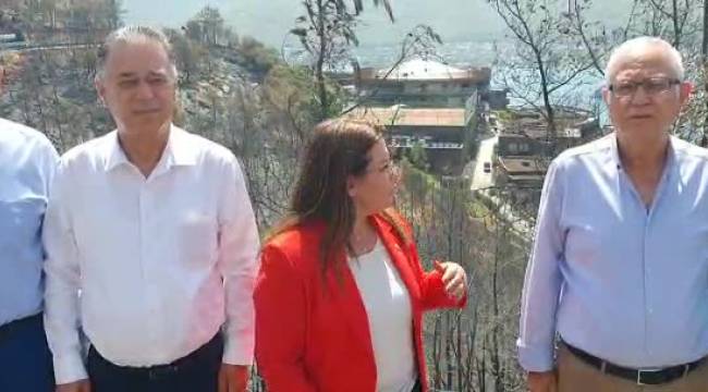 "Yangında, bugün olduğu gibi etraftaki ormanlık alan talan edilmişti. Dönemin Turizm Bakanı ‘Burada ağaç dikilecek, ormanlaştırılacak, yapılaşmaya kesinlikle izin verilmeyecek’ demişti. O tarihte dikilen ağaçlar, 3 tane beton ormanı diyebileceğimiz otele dönüştü ve ranta açıldı. Şimdiki yangında Orman Bakanı açıklama yapıyor, 'Kesinlikle yapılaşmaya açılmayacak, ağaç dikilecek' diye. 2007 yılında ‘ağaç dikilecek’ dedikleri yerlere otel diktiler. Bu yanan yerleri ağaçlandırmazlarsa, yeniden ormanlaştırmazlarsa, beton dikmeye kalkarlarsa CHP olarak karşılarında olacağız. Onlara bu imkanı vermeyeceğiz. Bu güzelim coğrafyayı betona boğmalarının önünde siper olacağız. Buradan söz veriyoruz; izin vermeyeceğiz."