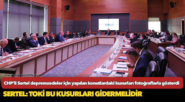 KİT Üst Komisyonu’nda TOKİ’nin bilanço ve hesapları görüşüldü. TOKİ Başkanı ve yönetiminin hazır bulunduğu toplantıda konuşan Sertel, yapılan dairelerde bariz kusurların olduğunu ifade ederek, şöyle devam etti:
