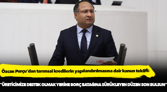 Çiftçilerin Kamu Bankalarına Olan Tarımsal Kredi Borçlarının Yeniden Yapılandırılmasına Dair Kanun Teklifi’ni TBMM’ye sunan CHP’li Milletvekili Özcan Purçu, çiftçilerin borçlandırılması ve bu konuda son yapılan düzenlemeye dair şunları söyledi: “Bankaların tüm sektörlere uyguladığı faiz oranlarını arttırmasından tarım sektörü de etkilenmiştir. Ziraat Bankası, tarımsal kredilere kullandırdığı faiz oranını değiştirmezken yapılandırma faiz oranlarını yüzde 20 olarak uygulamaktadır. Diğer bankalarda ise faiz oranları daha da yüksektir. Bu faiz oranları ile uygulanan yapılandırma çiftçilere daha çok zarar vermekte, çiftçinin geleceğe yönelik borcu katlanarak artmaktadır. Ayrıca, Türkiye Tarım Kredi Kooperatifleri tarafından kullandırılan tarımsal kredi alacaklarının yapılandırılmasını kapsayan 7316 Sayılı Amme Alacaklarının Tahsil Usulü Hakkında Kanun ile Bazı Kanunlarda Değişiklik Yapılmasına Dair Kanun, 22 Nisan 2021 tarihi itibariyle yürürlüğe girmiştir. Bu son düzenleme ile çiftçilere yüzde 6'sı Hazine, yüzde 12'si çiftçiler tarafından ödenmek üzere yüzde 18 faizle yapılandırma yapıldı. Ancak yapılandırmada borcun yüzde 30'unun peşin ödenmesi zorunluluğu getirilmesi Borç faizlerinin sıfırlanmasını talep eden çiftçilerin tepkisini çekmiştir. Bu nedenle acil olarak kamu ve özel bankalar ile Tarım Kredi Kooperatiflerinin başlatmış olduğu icra takibi ve haciz işlemlerinin durdurulması gerekmektedir. Son olarak, Tarım Kredi Kooperatifleri ve Ziraat Bankası’nın kuruluş amacı üreticinin ekonomik menfaatini korumak, meslek ve geçimleri ile ilgili ihtiyaçlarını sağlamak, çiftçilerin sosyoekonomik güvencesi olmaktır.”