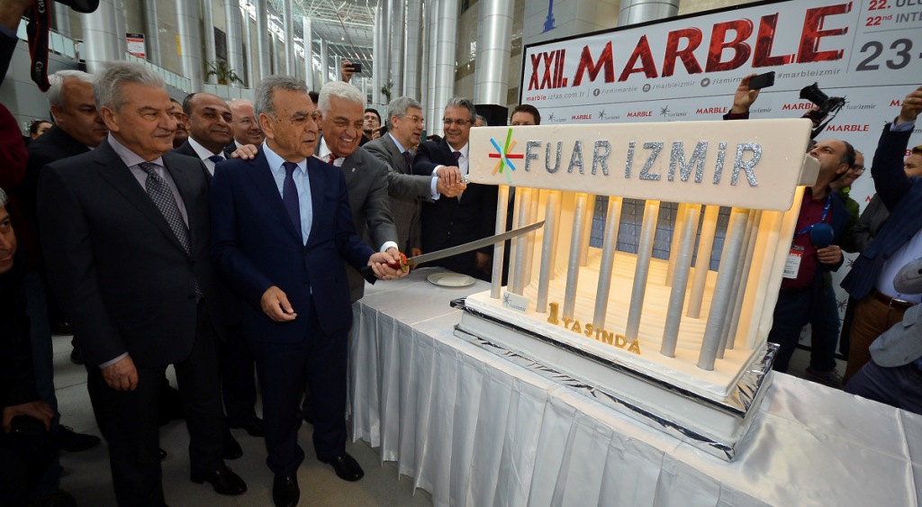 İzmir, mermer ve doğal taş sektöründe dünya çapında bir buluşmaya daha ev sahipliği yaptı. İzmir Büyükşehir Belediyesi ev sahipliğinde İZFAŞ tarafından düzenlenen MARBLE Uluslararası Doğal Taş ve Teknolojileri Fuarı, Türkiye’nin en büyük ve en modern alanı Fuar İzmir’de kapılarını 22. kez açtı. Açılışa çok sayıda siyasetçi, belediye başkanı ve sektör temsilcisi katıldı. Konuklarıyla birlikte stantları ziyaret eden İzmir Büyükşehir Belediye Başkanı Aziz Kocaoğlu, daha sonra Fuar İzmir’in birinci yıldönümü pastasını kesti.