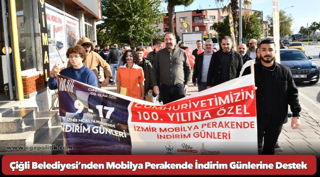 Cumhuriyetimizin 100. Yılı dolayısıyla düzenlenen İzmir Mobilya Perakende İndirim Günleri’nin açılış gününde Çiğli Belediye Başkanı Utku Gümrükçü ve dernek yetkilileri gerçekleştirdiği yürüyüşte Çiğli’de hizmet sunan mobilyacı esnafı ve vatandaşları selamladı. İndirim Günleri 17 Aralık Pazar gününe kadar devam edecek.
